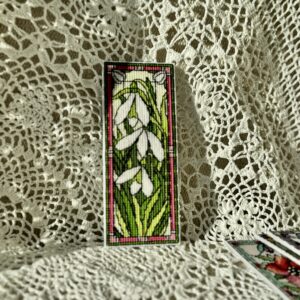 Sé el primero en valorar “Patrón de punto de cruz – Campanilla de Invierno estilo vidriera | Marcapáginas | Bordado floral moderno”
